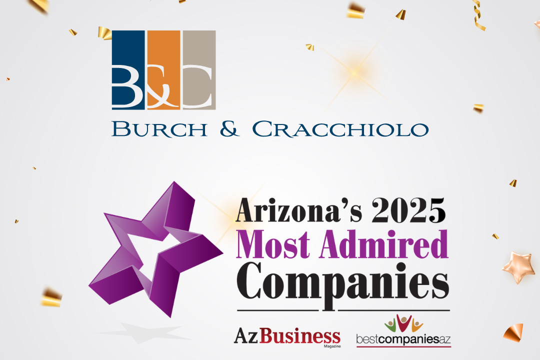Burch & Cracchiolo is proud to announce that it has been recognized as one of Arizona's Most Admired Companies of 2025 by Az Business Magazine and BestCompaniesAZ.